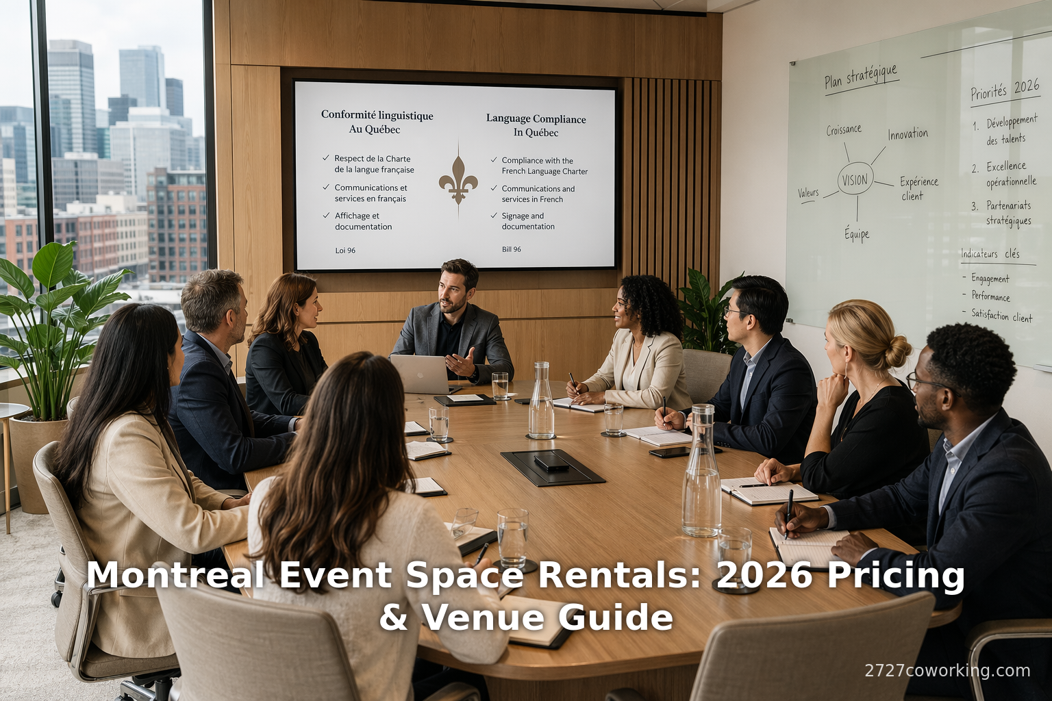 Montréal est un carrefour florissant pour les conférences, les salons professionnels, les lancements de produits et les événements d'affaires. En 2025, la ville a accueilli 477 événements d'affaires (environ 1 000 000 de délégués), générant environ 438 M$ CA en retombées économiques locales [1]. Montréal a été classée ville numéro 1 en Amérique du Nord pour les réunions d'associations internationales pendant neuf années consécutives [2] [3]. Ce leadership reflète la solide infrastructure de lieux de Montréal (allant des grands centres de congrès aux espaces de coworking flexibles, son soutien professionnel de classe mondiale (hôtels, services audiovisuels et d'interprétation, organisateurs d'événements) et sa main-d'œuvre bilingue. Les règles linguistiques du Québec imposent que la signalisation et le matériel des événements mettent l'accent sur le français, mais les événements destinés à un public international peuvent inclure un soutien bilingue en anglais [4] [5]. La tarification des espaces de réunion à Montréal varie considérablement : les salles de coworking de base peuvent commencer à partir de ≈6–10 $ CA par personne/heure, tandis que les salles de conseil haut de gamme ou les salles de bal d'hôtel peuvent coûter 60–100 $ CA+ par heure [6] [7]. Pour les conférences ou les lancements de produits, les organisateurs doivent équilibrer la capacité, les commodités et l'adéquation culturelle. Les critères clés incluent l'emplacement (accessibilité en transport au centre-ville), la préparation audiovisuelle/informatique, le service de traiteur sur place et les capacités bilingues (ex. : interprètes ou personnel anglophone) [8] [9]. Des exemples montrent que des événements majeurs comme la conférence HCI International 2026 choisissent le Palais des congrès de Montréal pour son infrastructure audiovisuelle avancée et son emplacement central (Source: 2026.hci.international) [10]. Les tendances émergentes pour 2026 mettent l'accent sur des lieux immersifs, flexibles et durables : les entreprises recherchent des espaces photogéniques (ex. : lofts industriels en brique et verre) et des commodités axées sur le bien-être, et les salles doivent être pré-câblées pour les plateformes hybrides (configuration « agnostique » Zoom/Teams) [11] [12]. Ce rapport fournit une analyse approfondie du marché des espaces événementiels de Montréal en 2026, incluant les considérations bilingues, les données tarifaires, les types de lieux, les directives de sélection et les perspectives d'avenir, avec de nombreux exemples et citations.